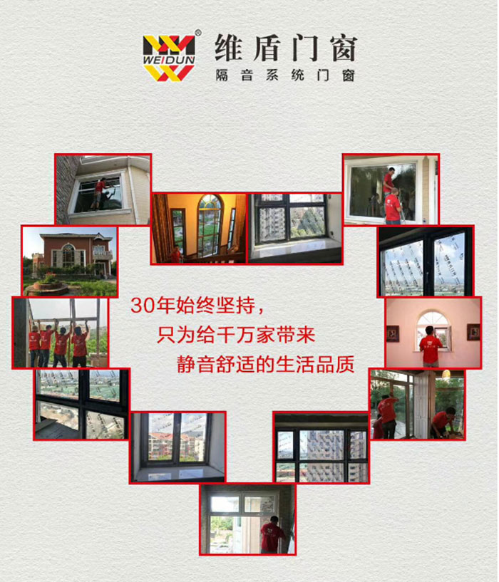 維盾門窗,30年始終堅持,無論從研發、設計、生產每一項都要經過嚴格把關,無論從隔音性、氣密性、水密性都在不斷超越自己,只為給千萬家庭帶來靜音舒適的生活品質。如果您對維盾隔音系統門窗感興趣,請點擊網頁旁邊的咨詢探頭聯系我們的在線客服,或者撥打我們的400電話進行咨詢吧!