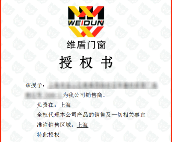 維盾門窗所有官方專賣店、分公司、代理商均有維盾門窗的官方授權書,去門店購買的時候可以查看其正規授權和相關經營資質。