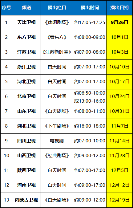 上面是第一階段衛視廣告播出時間表,13套衛視頻道陸續播出,敬請關注。