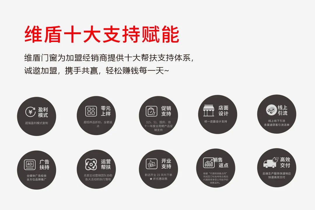 匠心不朽,卓爾不群。維盾秉持初心,以匠心造福的理念造好窗,讓千家萬戶靜享高品質舒適生活,筑造美好人居生活新體驗;以“合作共贏”的加盟理念,為全國各地想創業的伙伴們提供加盟十大幫扶政策:全媒體廣告投放、線上線下多渠道獲客引流派單、逢年過節周期性產品促銷支持等,助力經銷商在開店以及經營過程減少阻礙,提早盈利,維盾展會首日短短一天,便已連下10多城。