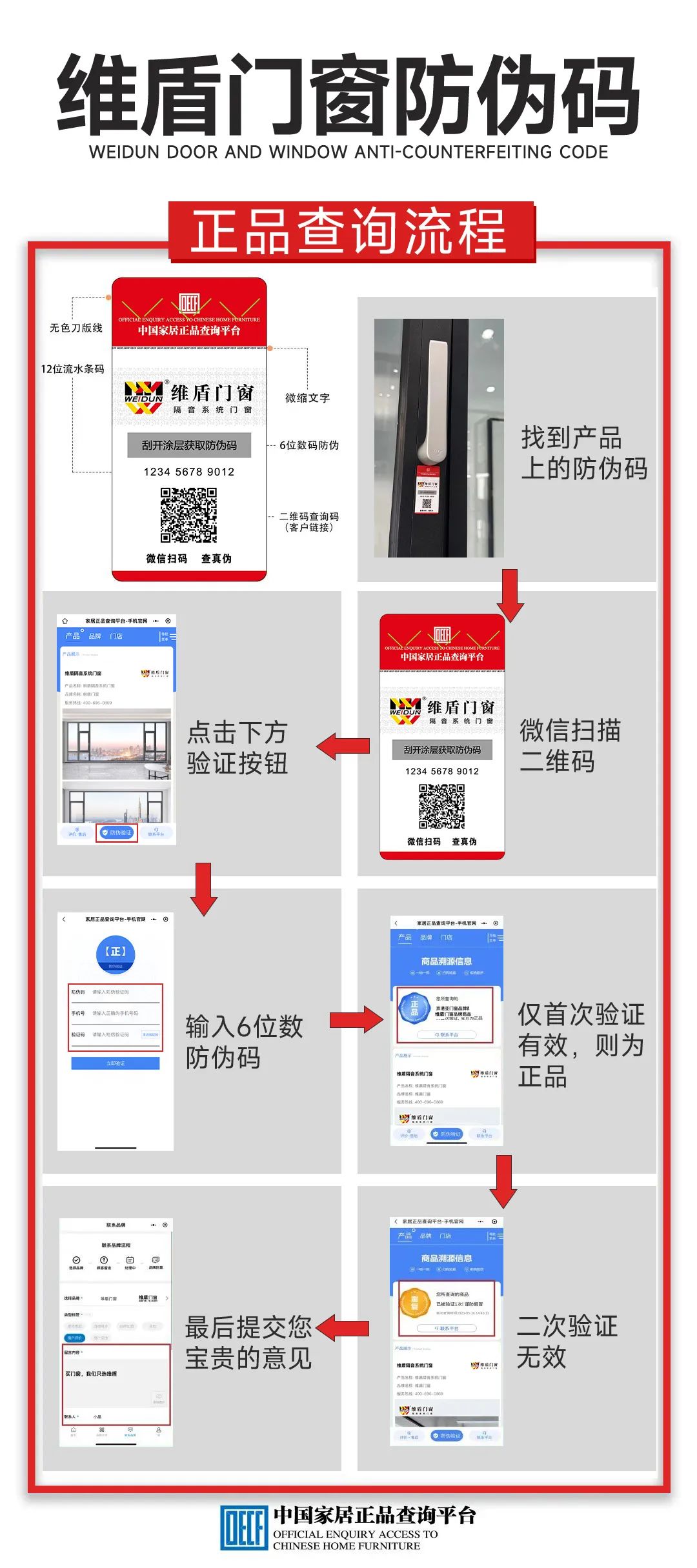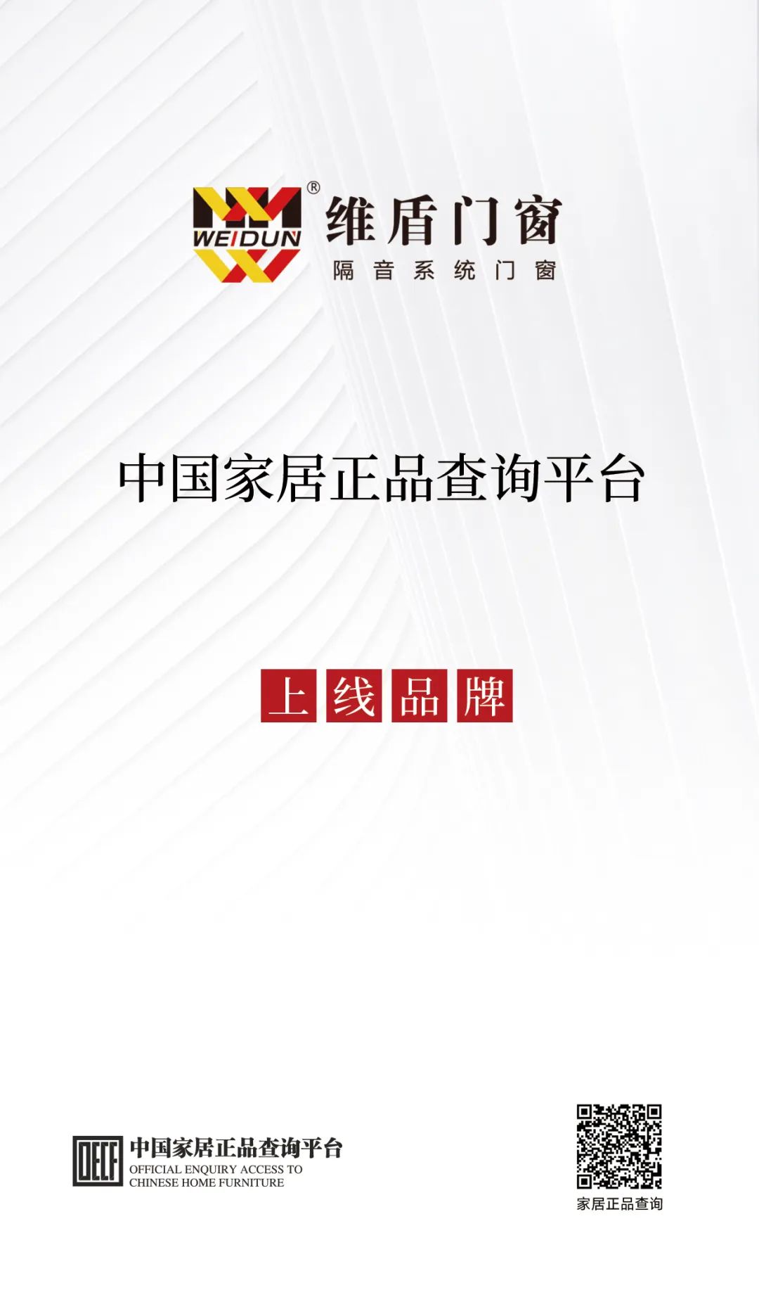 2023年12月,維盾門(mén)窗在中國(guó)家居正品查詢(xún)平臺(tái)正式上線(xiàn)。進(jìn)駐該平臺(tái)后,維盾將實(shí)現(xiàn)防偽查詢(xún)系統(tǒng)使用指引全渠道覆蓋,“一窗一碼”杜絕假冒偽劣產(chǎn)品,維護(hù)品牌形象,規(guī)范終端市場(chǎng),營(yíng)造正規(guī)有序的消費(fèi)環(huán)境,為廣大消費(fèi)者提供強(qiáng)有力的權(quán)益保障。