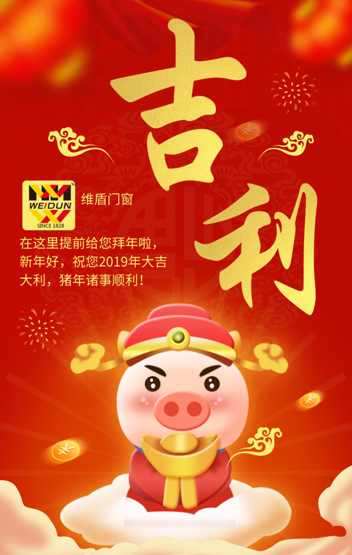 金豬即將報春,在豬年即將到來之際,維盾門窗祝愿大家新春快樂、諸事大吉、豬年行大運!