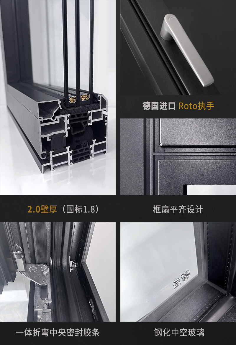 產品特點:滿足高性能需求,室內框扇平齊窄邊設計,結合建筑及環境的